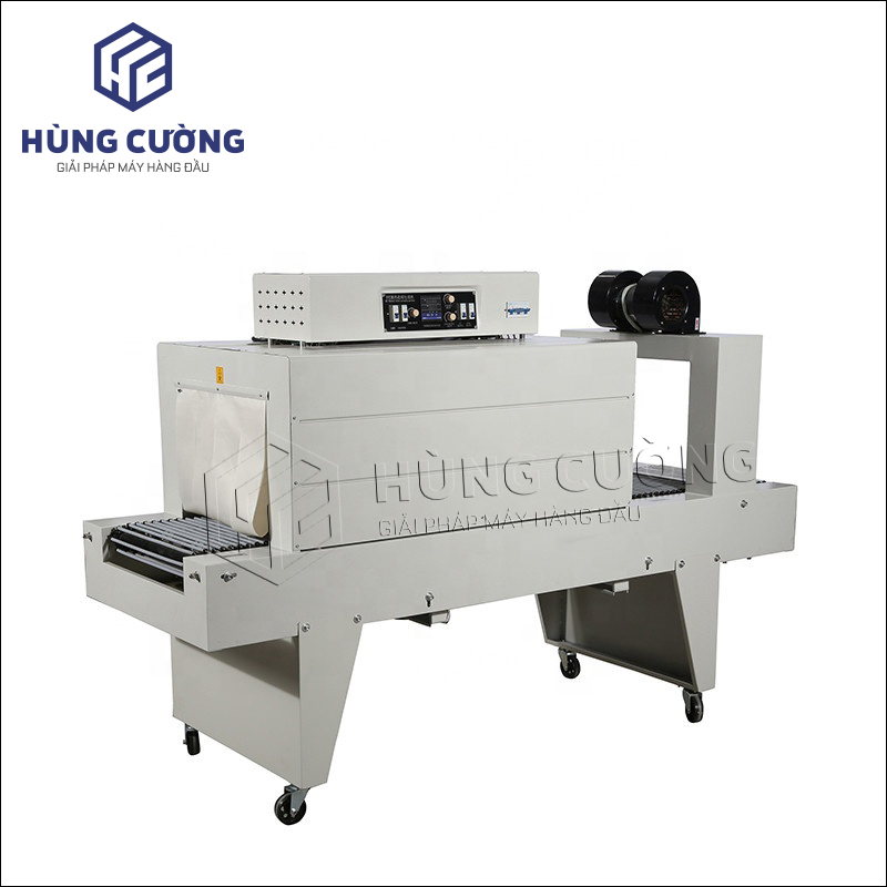 Máy trang bị thêm quạt gió làm nguội nhanh, giúp sản phẩm sau khi đóng gói màng co cố định hình dạng tốt hơn, chắc chắn hơn, không bị biến dạng nhiệt.
