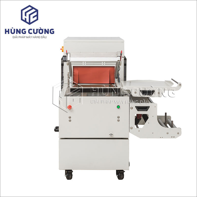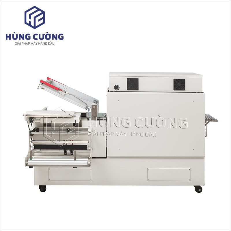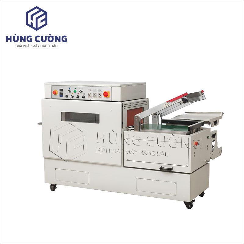 Máy đóng gói màng co 2in1 DFS-450 kết hợp công đoạn cắt, hàn kín màng co trong cùng một thao tác. Nam châm điện tự động giữ khung dao cắt khi khung cắt được kéo xuống, vật phẩm cần đóng gói sẽ được băng tải tự động vận chuyển tới buồng co nhiệt, hiệu quả làm việc cao, rút ngắn công đoạn sản xuất, chi phí đầu tư thấp.