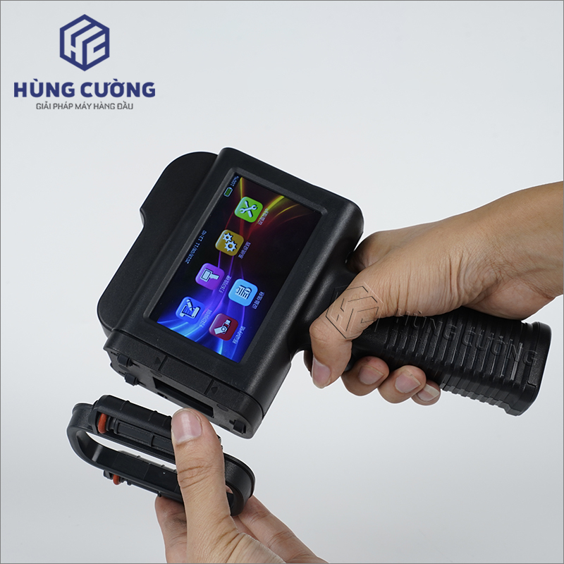 - Máy có cấu trúc nhỏ gọn, hiệu quả cầm, nắm cao, cầm lâu không mỏi. Kết hợp với băng tải chuyển đổi trạng thái in online giúp tăng tốc độ làm việc, giảm chi phí lao động.